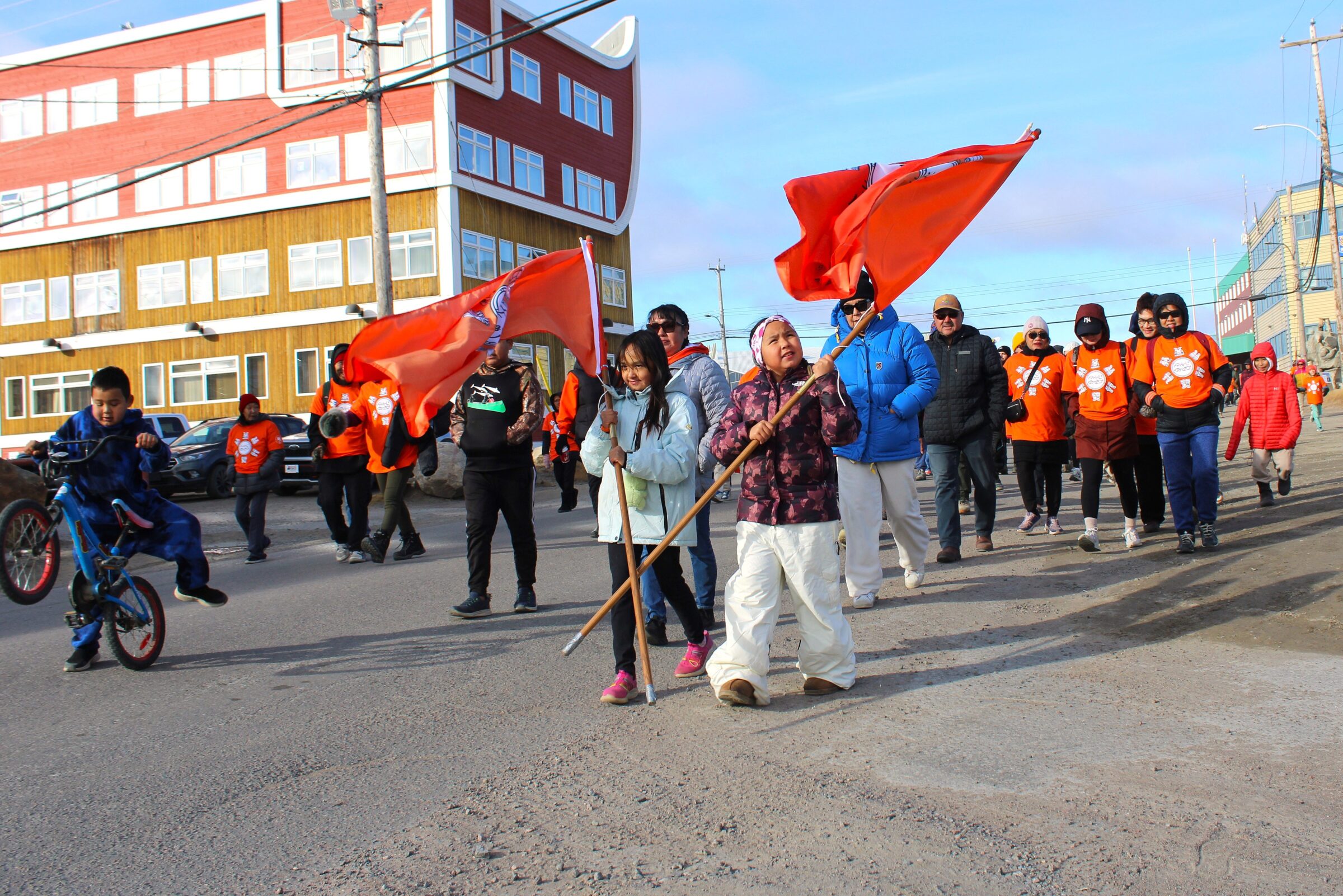 As the march concluded, organizers adapted to the elements by shortening some speeches, allowing participants to find refuge from the wind. For those who may struggle with the day’s emotional significance, the Nunavut Kamatsiaqtut Help Line is available at 1-800-265-3333, and the National Indian Residential School Crisis Line can be reached at 1-866-925-4419.