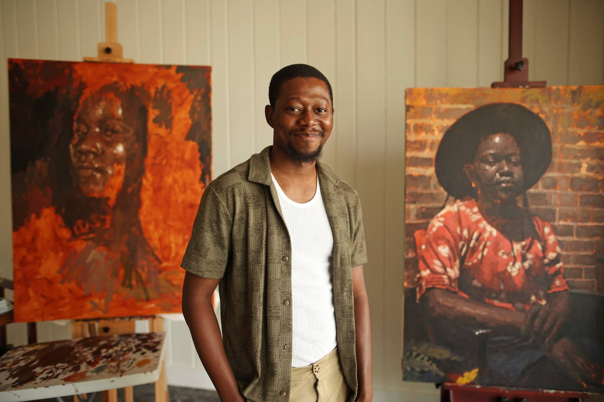 Olukotun’s artistic journey began in Nigeria, where he transitioned from a teaching career in Abuja to pursue painting full-time. He moved to Lagos to join the Universal Studios of Art, immersing himself among professionals to refine his skills. Under the mentorship of renowned Nigerian artists, including Abiodun Olaku and Bunmi Babatunde, Olukotun developed his craft amidst the challenges of establishing a career in the arts.