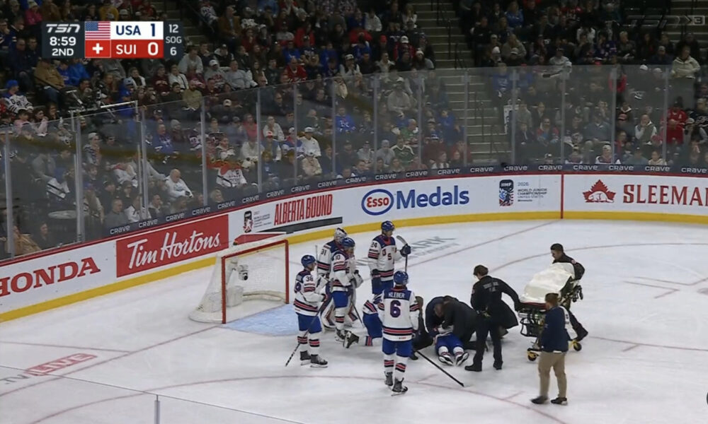 URGENT UPDATE: Cole Hutson, a key player for Team USA, was taken off the ice on a stretcher during the World Junior Championship match against Switzerland...
