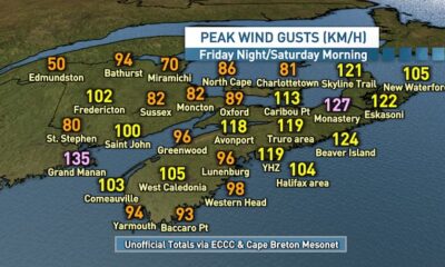 UPDATE: More than 50,000 N.B. Power customers are currently without electricity as powerful winds sweep across the Maritimes this morning, October 14, 2023. Gusts reaching up...