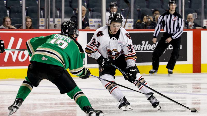 However, the Hitmen’s resilience shone through in the second period. With 12:09 remaining, Wyatt Pisarcyk scored off a faceoff, cutting the deficit to 2-1. The Hitmen shifted momentum, showing their determination to fight back.