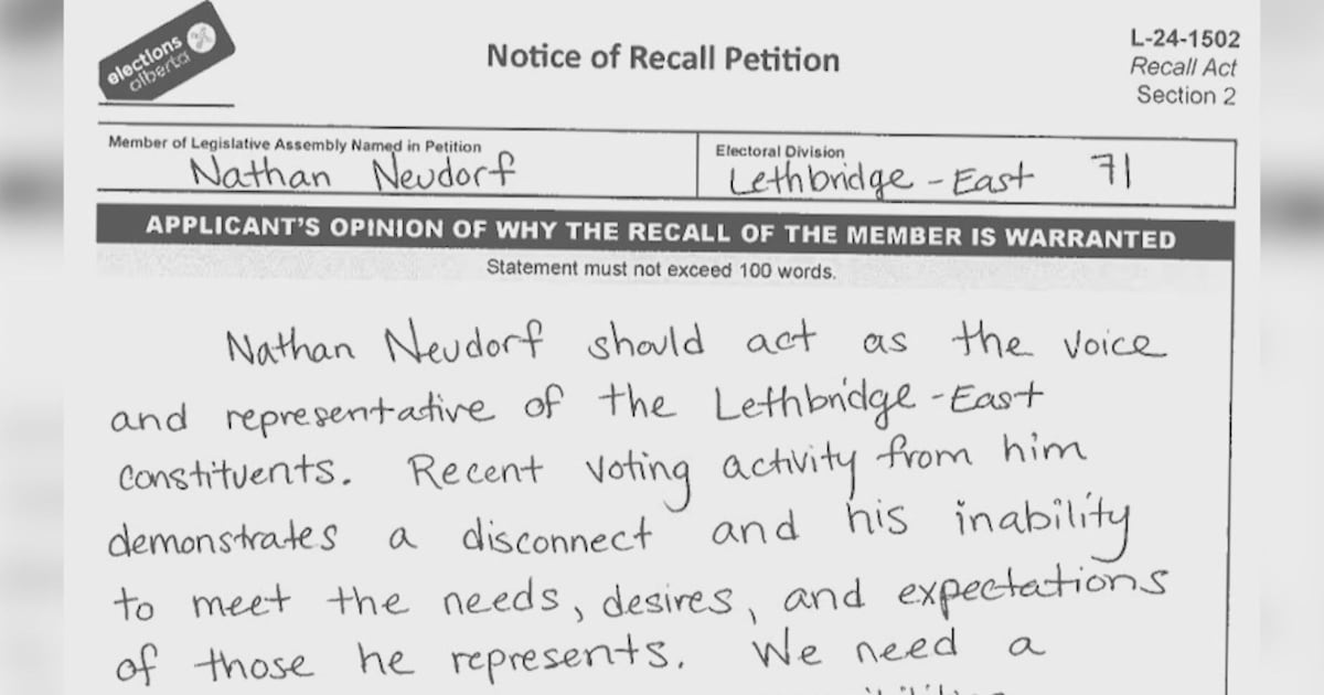 UPDATE: Frustration mounts as the recall petition for Lethbridge-East MLA Nathan Neudorf faces significant delays, leaving supporters in the dark. Over three weeks have passed since the petition was officially launched by Ryan Tanner on November 25, yet many seeking to sign the document report confusion and a lack of communication.