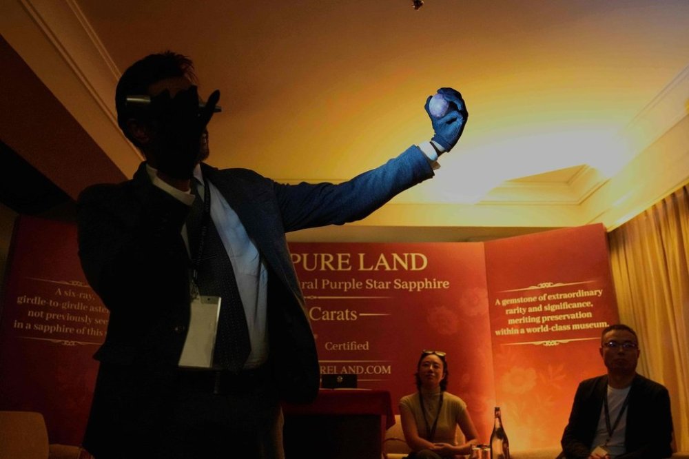 The round-shaped gem, named the “Star of Pure Land,” stands out as the world’s largest documented natural purple star sapphire. According to Ashan Amarasinghe, a consultant gemologist, the stone features a well-defined asterism with six distinct rays, setting it apart from other gemstones. Amarasinghe stated, “This is the largest purple star sapphire of its kind,” emphasizing its unique characteristics.